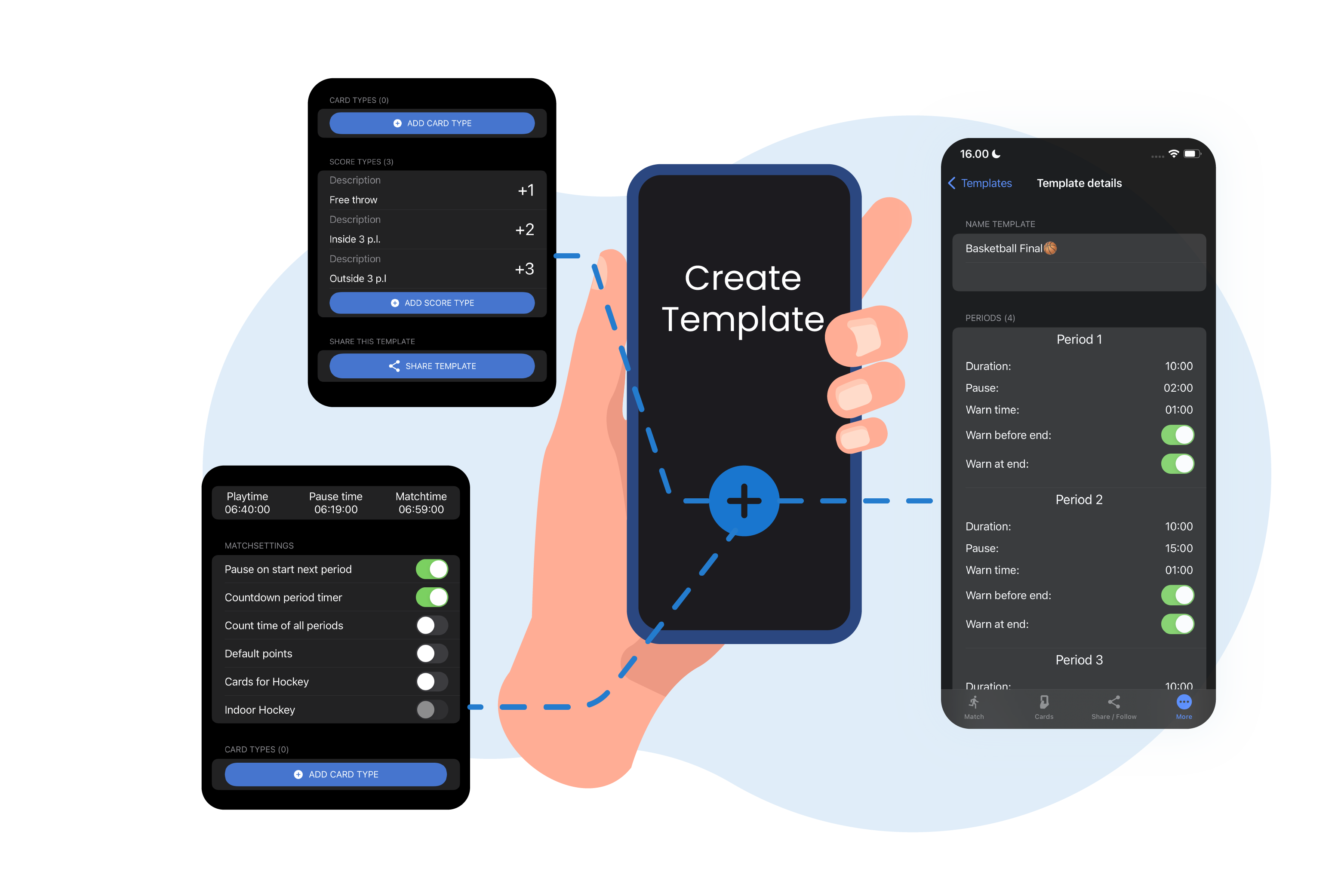 One of our coolest features is that you can easily create your own sports template. So if you host youth matches that play different period lengths, no worries, just set it up once and reuse it over and over again!